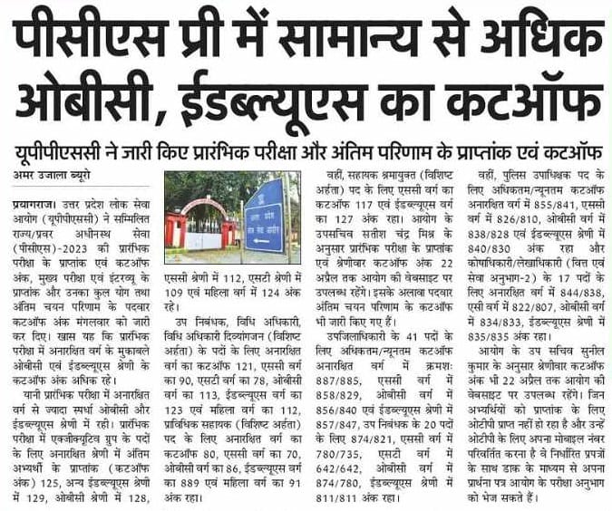 UPDATE dated 17.04.2024 : Good News !! UPPSC has announced PCS 2023 Pre Exam Cut off Marks & candidates marks . Check UPPSC PCS Exam Result from link below….